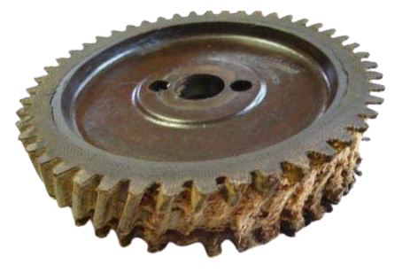 This one is from a Ford, but fiber timing gears were installed through the 1970’s and probably later. They were chosen because they ran more quietly than machined metal gears. But they did deteriorate. And when they did they would chew off their own teeth.